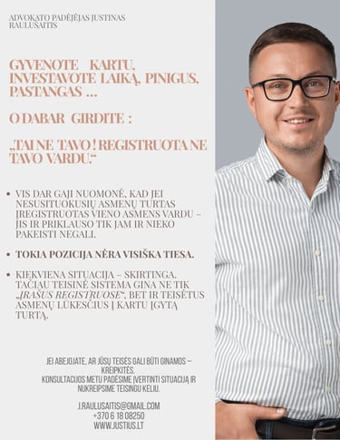 ⚠️ Svarbu: kiekvienas ginčas yra individualus, tačiau LAT suformuota praktika aiškiai patvirtina – teisė į turtą ar kompensaciją gali būti ginama net ir tuo atveju, kai turtas registruotas tik vieno asmens vardu.